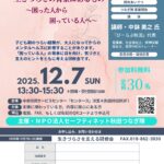 - トラウマの克服はできるのか・専門的アプローチから紐解き 令和7年度「生きづらさを支える研修会」2025年12月7日(日)、当法人主催の「令和7年度 生きづらさを支える研修会」を開催いたしました。当日は多くの方にご参加いただき、誠にありがとうございました。 今回の研修では、「生きづらさの背景にあるもの 〜『困った人 […]